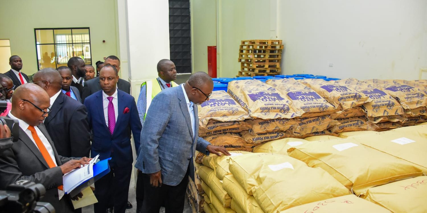 CS Lintui inspects a consignment of illegally imported milk powder val...